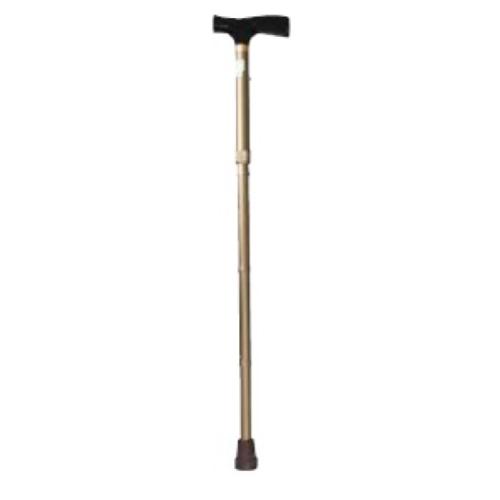 BASTONE PIEGHEVOLE IN ALLUMINIO (Bronzo) CON MANICO A "T" - ALTEZZA REGOLABILE 77,5-87,5 cm - PORTATA MAX 100 kg - IMPUGNATURA IN LEGNO E PUNTALI ANTISCIVOLO